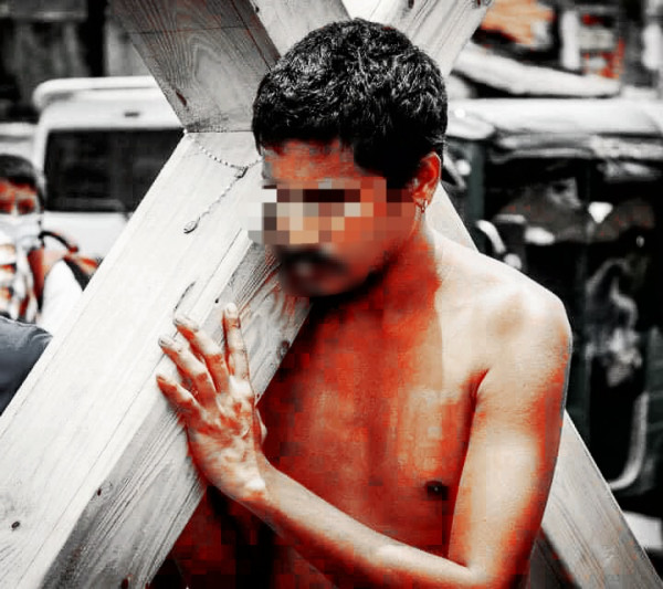 사진설명- 스리랑카 한 예술가가 30키로가 넘는 십자가를 메고 걸어가며 정부를 향해 민생의 고난을 보여주고 있습니다상업적 목적으로도 마음껏 사용하세요사진저작권자 : 강하연#스리랑카_남자#벌거벗은_남자#십자가_지고_가는